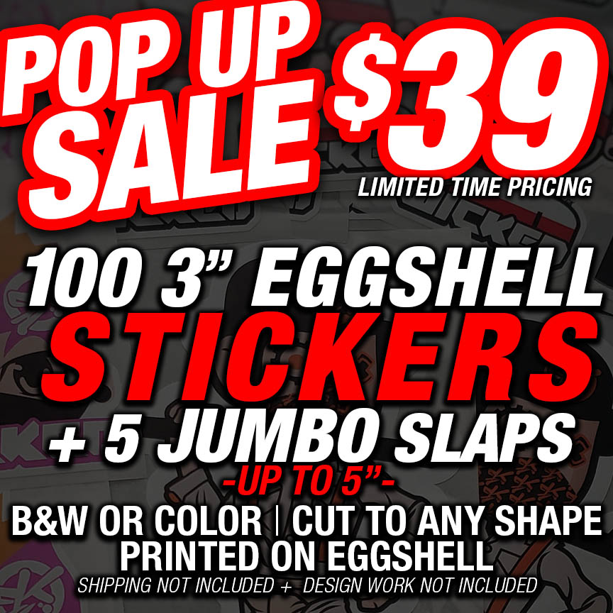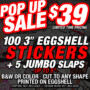 100 3″ EGGSHELL STICKERS + 5 JUMBO 5″ STICKERS