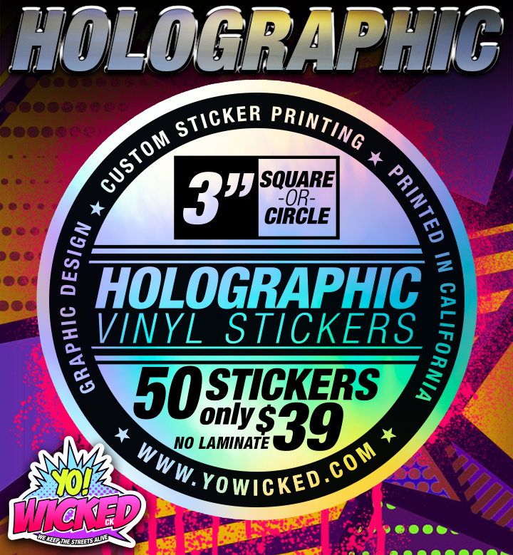 50x 3″ HOLOGRAPHIC VINYL STICKERS