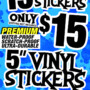 15x 5″ PREMIUM VINYL STICKERS CUT TO ANY SHAPE